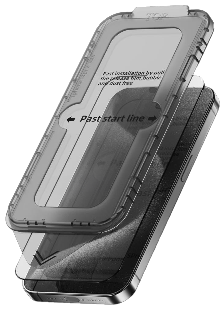 The installation frame is a practical solution that makes applying tempered glass to a phone screen much easier. It ensures a perfect fit, eliminating the risk of mistakes and allowing for precise glass placement. As a result, the application process runs smoothly, minimizing the risk of air bubbles or misalignment.